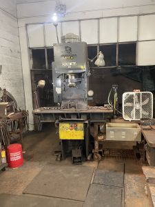 Fully equipped blacksmith/ bladesmith shop for sale in Middleboro, Massachusetts, USA. Plug and work. Preferably, one buyer to take all. 26-ton Haniffin Hydraulic press, 50 kg upgraded (by Mark Krause) Say-Mak power hammer with 15 spring dies. 400 and 700 lb anvils with a lot of hardy tools, 7.5 ho x 132″ belt grinder, 2 x 72″ Bader belt grinder with attachments, and a lot more! 360″ of 1045 shaft steel for hammers. And more.