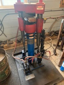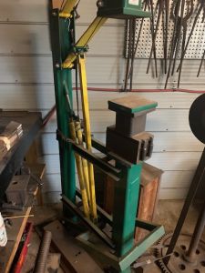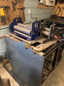 3 anvils (1- 152 lb Peter Wright in excellent condition with stand). A custom-built 4’ x 8’ layout table with a custom clamping system (30 clamps). This table was designed for fabricating and has a 1” thick top to remain truly flat. Because of this, the table weighs in at over 1 ton. Fireplace doors were my bread and butter, so over the years, I did everything I could to build better and better doors. Frame jigs to make it easier and save time, and jigs to stretch the screen. So tight in fact that I could bounce a 25’ measuring tape off the screen like a rubber ball. Jigs for setting rivets. A jig for cutting true arches for the top of doors. 3 different designs for building frames to fit the fireplace openings. These proven techniques work and will be provided to the smith who buys this equipment.