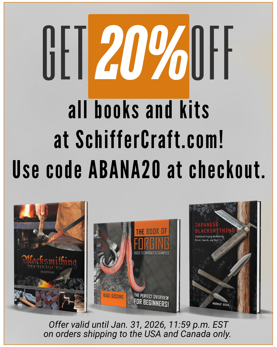Schiffer Publishing has generously extended a 20% discount to the ABANA community for a limited time. Use code ABANA20 on SchifferCraft.com for 20% off all books and kits at checkout through 1/31/2026. Offer valid until 11:59 p.m. EST on orders shipping to the USA and Canada only.