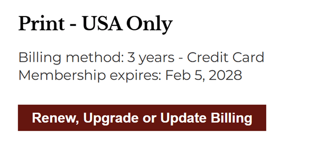 - Scroll down and below your personal information, there will be a box with a button labeled “Renew, Upgrade, or Update Billing”